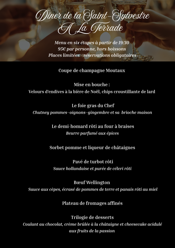 À la Terrade vous invite à découvrir une gastronomie simple, chaleureuse et savoureuse, centrée sur les poissons, les crustacés et des viandes d’exception (maturées ou non) cuites au four à braises.