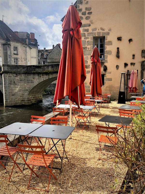 Fermez les yeux et écoutez le doux clapotis de la Creuse qui passe à vos pieds sous le pittoresque pont médiéval de la Terrade, au cœur du quartier historique où les lissiers (ceux qui tissent la célèbre tapisserie d'Aubusson) se sont installés dès le 16ème siècle.