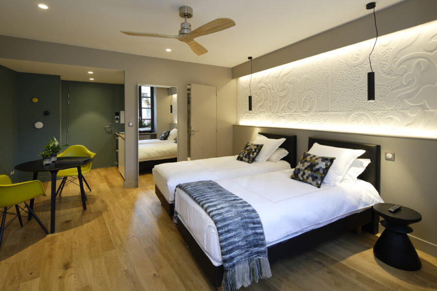 Suite 11 located on the first floor of an 18th century building. Comfortable stairs to go up. It is decorated in contemporary style and furnished with designer furniture. Oak parquet floor.